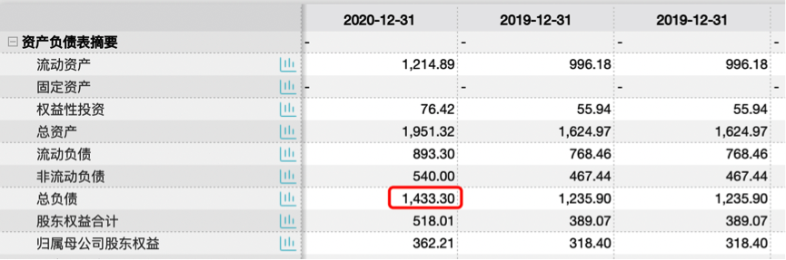 更要命的是,整个2020年,宝龙地产总负债为1433.30亿元,其中流动负债就达到893.30亿元,占总负债的比例为62.32%。