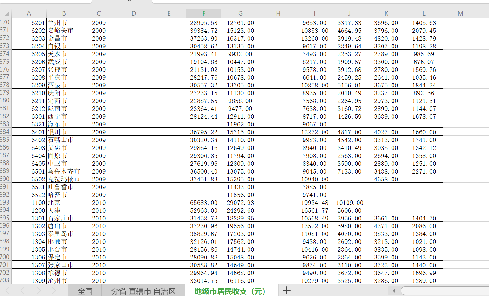 全国、省、地级市居民收入和消费支出情况面板数据(1999-2020年)