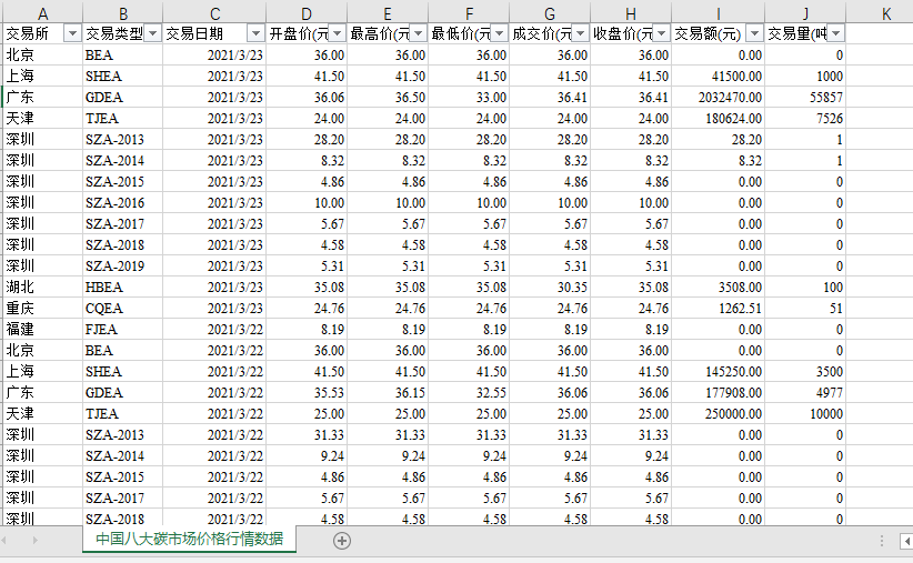 【最新最全】2013-2021年碳交易市场数据集(1)