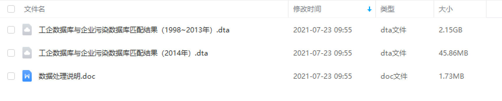 “工业企业数据库”和“工业企业污染数据库”两份数据都是经过初步处理的dta格式,有企业匹配唯一标识码、企业名称和组织机构代码.所有数据绝对真实有效。