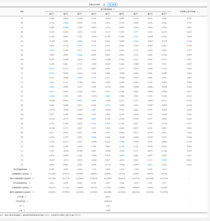 (1)直接把总共33个测量项进行因子分析,SPSSAU称其‘全进入效度法’。