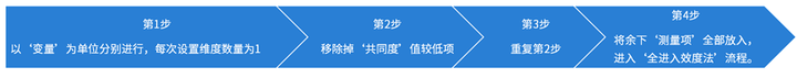 ‘步进效度法’,其思想在于首先将非常糟糕的测量项直接‘干掉’,然后再进行‘全进入效度法‘分析流程。这样可大大减少测量项的个数,减少分析难度。