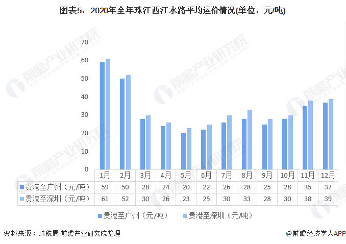 5、珠江水路平均运价在20-61元之间,浮动较大