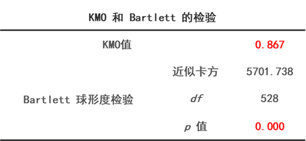 SPSSAU效度分析中可自动输出KMO 和 Bartlett 的检验结果。