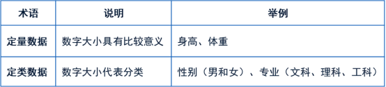 数据一般可分为两类,定量数据和定类数据,区别为数字大小是否具有比较意义。