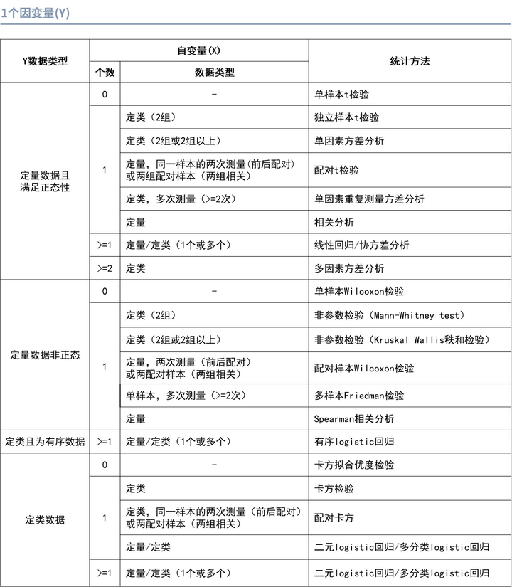 以下是一些不同类型数据适用的常见分析方法,大家可对照此图快速选出适合的方法。