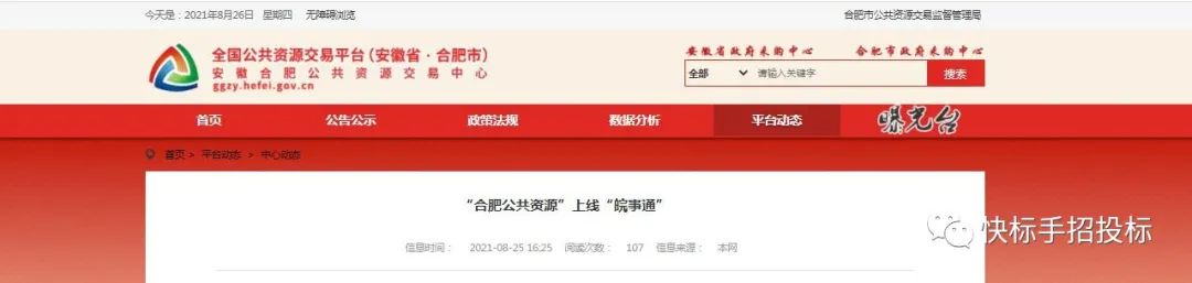 合肥公共资源交易中心电子服务系统与“皖事通”APP成功对接