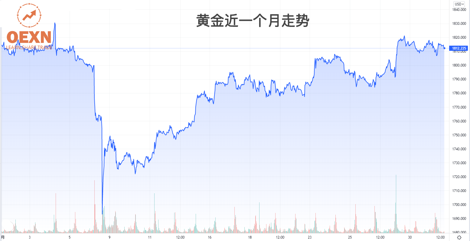 OEXN周三报道:隔夜黄金坐上过山车,走出V型走势,今晨黄金徘徊于1812美元/盎司附近。