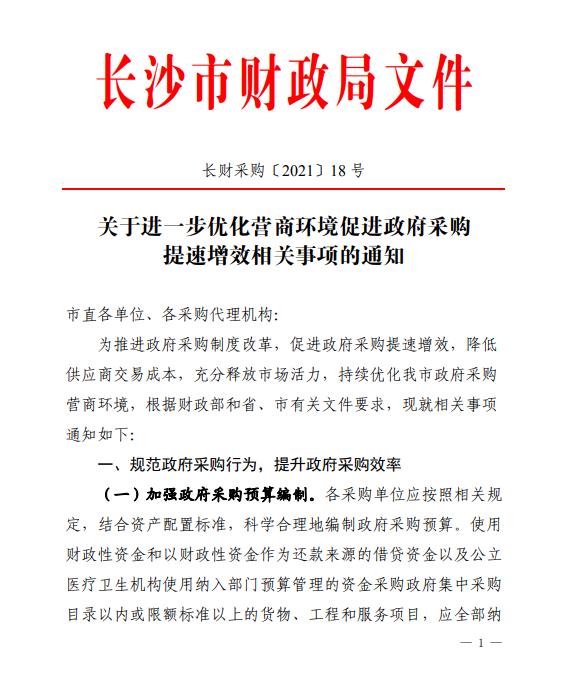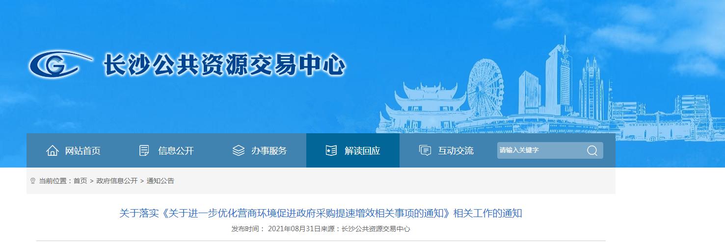 昨日,长沙公共资源交易中心发布关于落实《关于进一步优化营商环境促进政府采购提速增效相关事项的通知》相关工作的通知。