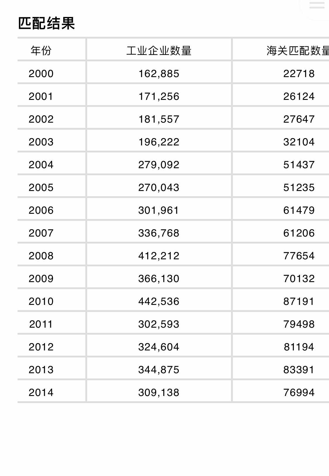 最终,我们得到任意满足第二步或第三步匹配的企业。