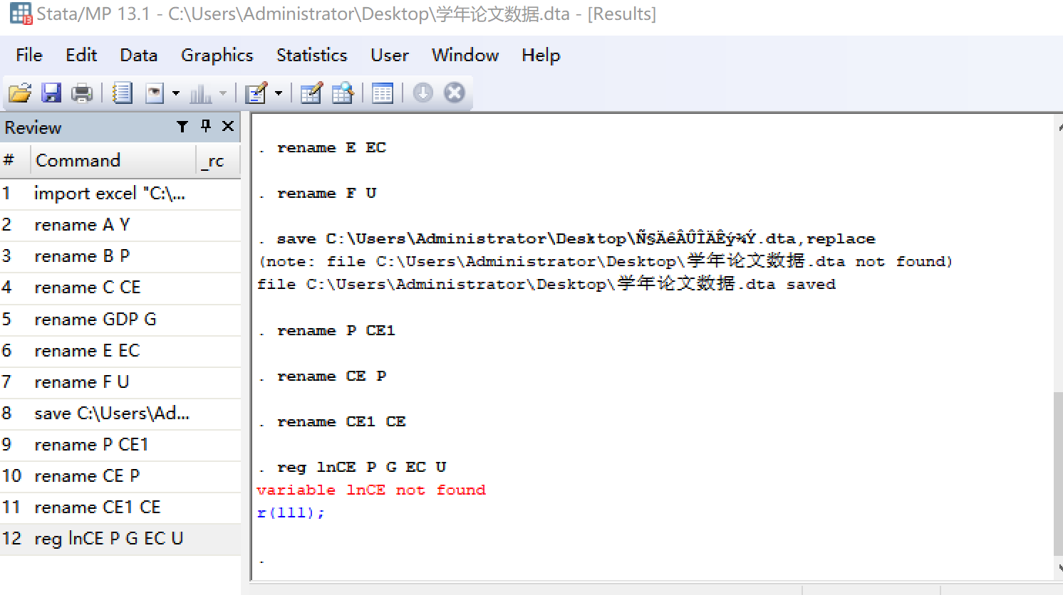 导入Excel数据后,做多元回归分析时为什么变量总是not found,该怎么办啊