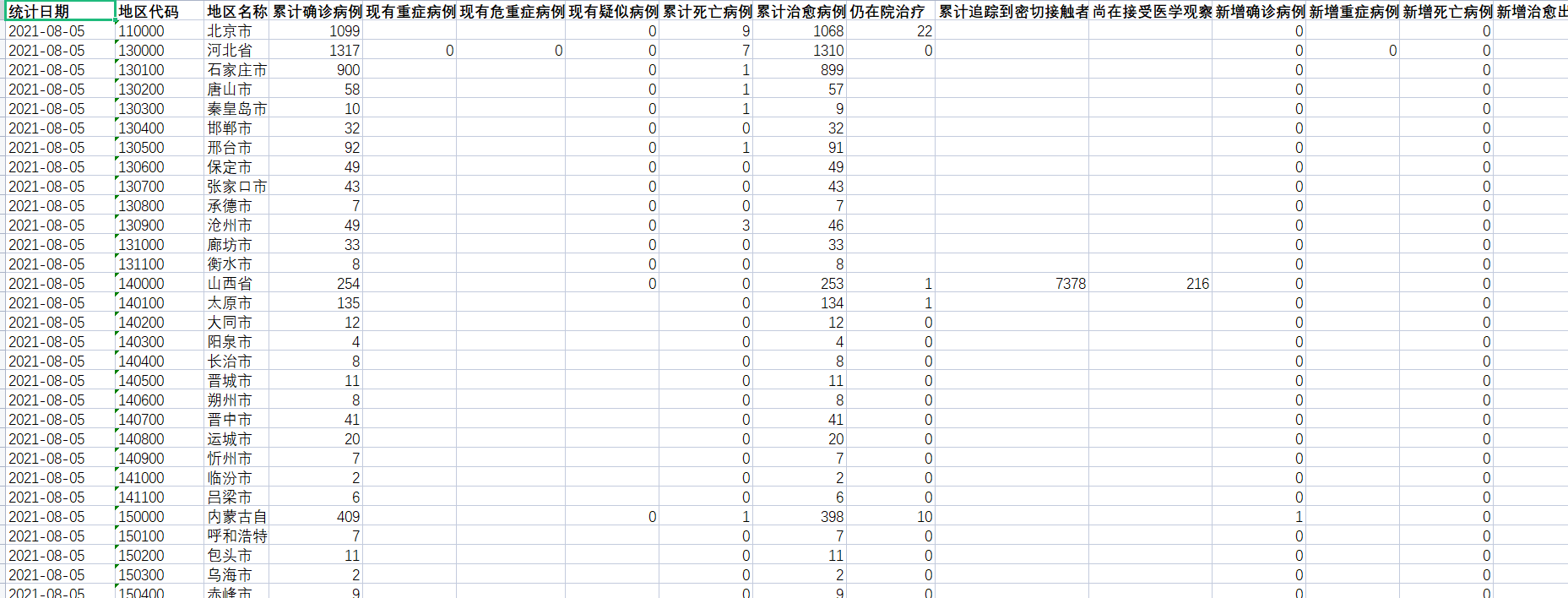 各省/市新冠疫情-每日追踪数据(2020年1月10日-2021年8月5日)