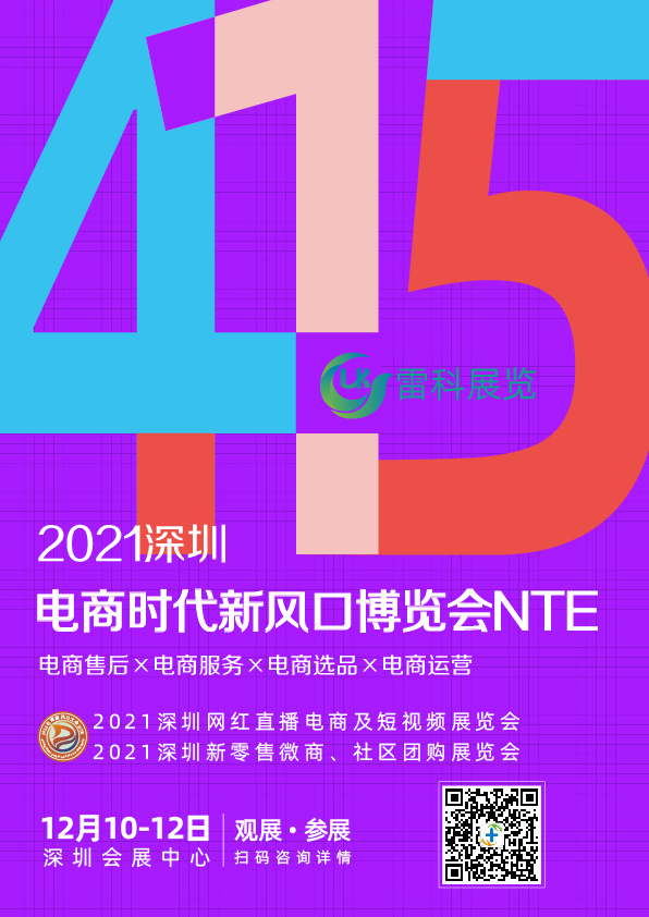 由雷科集团主办的2021深圳电商时代新风口博览会NTE“2021深圳网红直播电商及短视频展览会2021深圳新零售微商、社区团购展览会”(简称:新风口大会)将定于2021年12月10-12日在深圳会展中心举办,50000平方米,1000家展商,超过6万人次专业观众,新风口大会主要从“电商选品、电商运营、电商销售、电商售后”提供电商时代全方位服务,帮助电商产业良性发展,拓展企业电商发展之路。