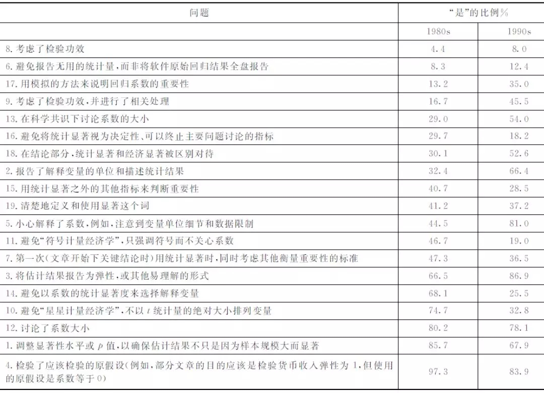来源:吴小康.关于统计显著与经济显著的若干讨论[J].经济学动态,2019(01):145-158.