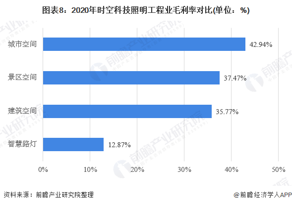 本文核心数据:照明工程行业龙头企业全方位对比、2020年时空科技照明工程业营收、2020年时空科技照明工程业毛利率对