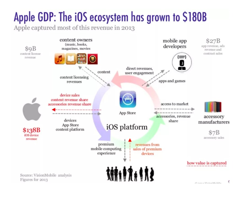 3. 苹果依赖高端市场。考虑到大多数 Apple 产品的高价标签,而且细分市场很少多样化,Apple严重依赖高端市场。这一职位引起了消费者的极大期望。市场需要感觉到它一直在为其辛苦赚来的现金提供最好的产品。苹果应用商店的平均消费者支出为每年 138 美元。 (What’s NextMedia and Analytics)