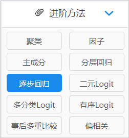 然后,再利用逐步回归进行分析。选择【进阶方法】–【逐步回归】。