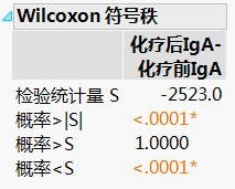 结果如图12所示,患者化疗前后IgA差异有统计学意义(S=-2523.0,p<0.0001)。