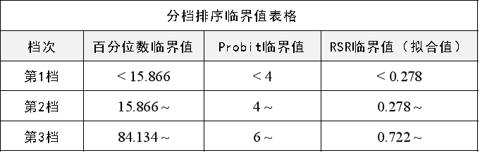 上表格展示3个档次时,RSR的临界值,用于最终分档使用。