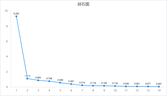 同时可结合碎石图辅助判断因子提取个数。当折线由陡峭突然变得平稳时,陡峭到平稳对应的因子个数即为参考提取因子个数。