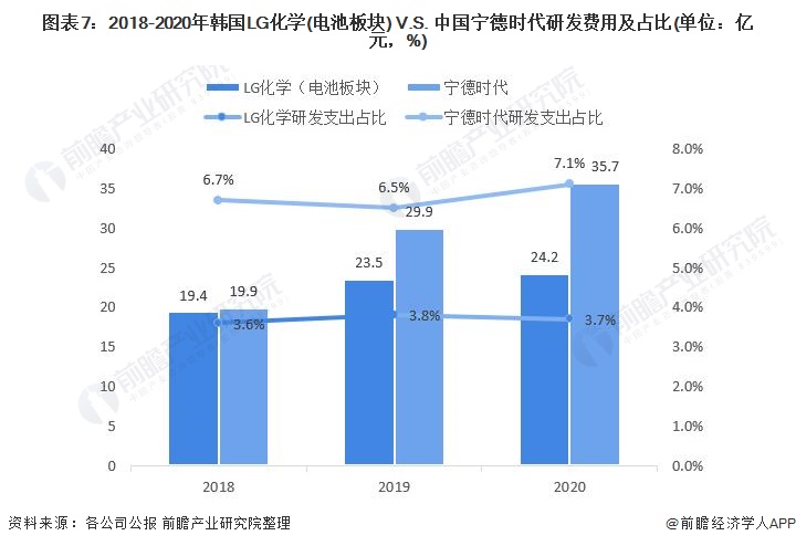 ——研发投入对比:宁德时代研发投入高于LG化学且逐渐拉大差距