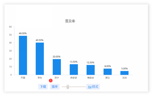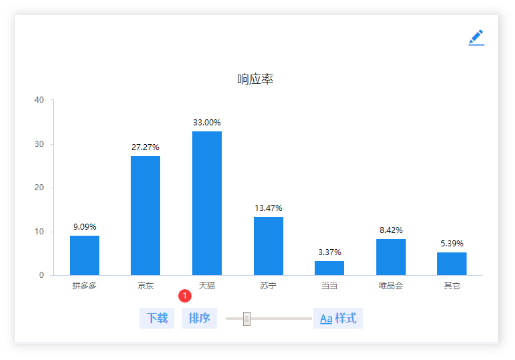 而普及率是一种人群的占比,更加强调样本中有多少比例选择某项。两个指标值的侧重点不一样,如果深入一点的分析,通常需要对响应率进行分析。当然响应率也可以使用图形进行表达,如下图: