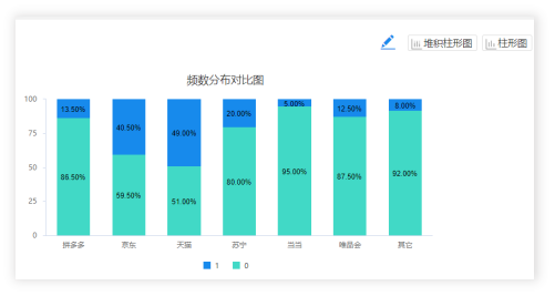 上图展示了各项的选择比例,‘天猫’的占比最高为49%,即说明网购平台中天猫的使用率最高,其次是‘京东’,占比是40.5%。除了使用柱形图进行展示,也可以使用条形图,并且对数据进行排序展示等。