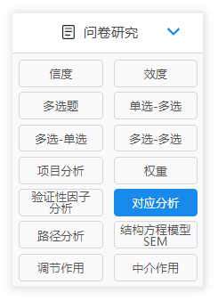 除了上述涉及到多选题的分析技巧外,有时候还可能分析多选题和多选题之间的关系,也或者多选题和单选题之间的关系,均可通过SPSSAU【问卷研究】里的分析功能实现。