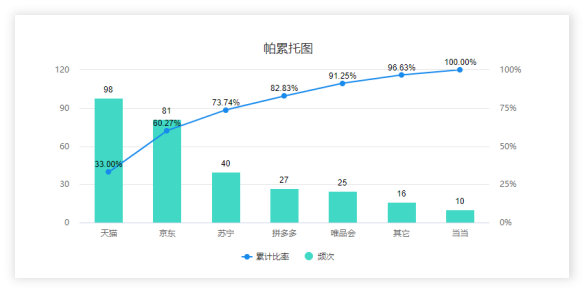 帕累托图是利用2/8原则进行分析的一种思想,并且使用图形进行展示,一般是为了找到某方面的原因,最大的问题情况等。本次案例的背景并不满足这一点,所以仅列个图,但是不能进行分析。