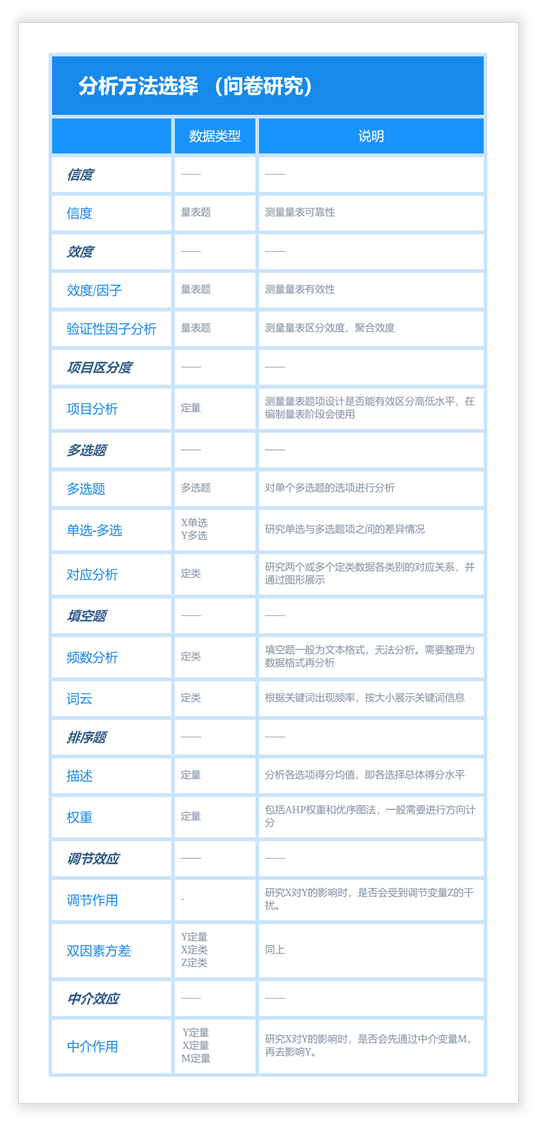 SPSSAU也提供几类常见的分析框架,研究者可以结合自己的问卷类型进行选择。