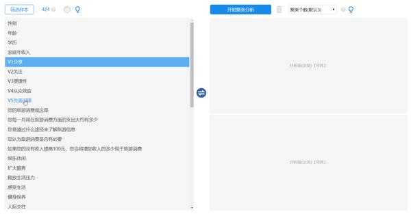 选择5个分析项,点击拖拽到右侧,进行分析。