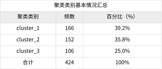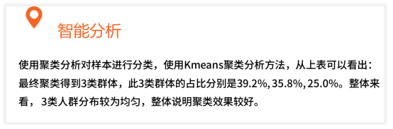 结合频数表格与智能分析结果可知,整体分布较均匀,说明聚类个数设置为3类比较合适。
