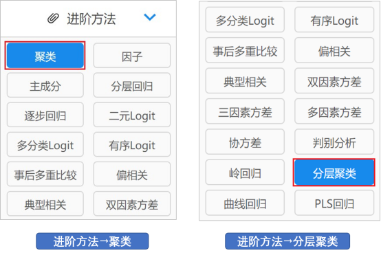 如果是按样本聚类,使用SPSSAU的进阶方法>“聚类分析”功能,可以分析定量或定类数据。