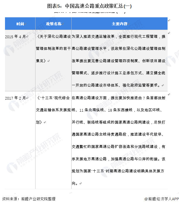 中国高速公路行业市场前瞻与投资战略规划分析报告》,同时前瞻产业研究院还提供产业大数据、产业研究、产业链咨询、产业图谱、产业规划、园区规划、产业招商引资、IPO募投可研、招股说明书撰写等解决方案。