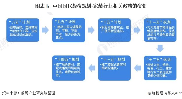 我国国民经济发展规划中,与家装行业相关的政策主要在建材与建筑耗材的选用方面。根据我国国民经济“八五”计划至“十四五”规划,国家对家装行业的政策经历了从“调整建材工业结构”到“推广低耗能建筑”的变化。