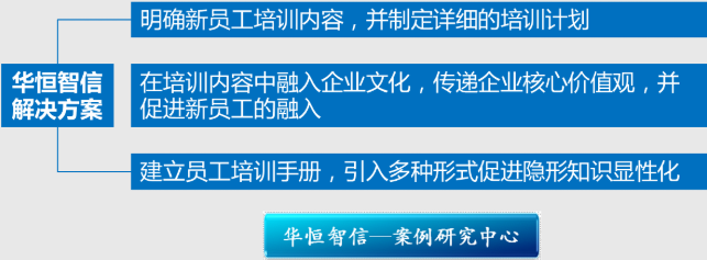 通过与该公司多层次管理者、老员工代表及新员工代表的深入访谈,结合对该公司培训方案及计划的深入分析,针对该公司新员工培训过程中存在问题,华恒智信顾问专家团队提出了以下解决方案: