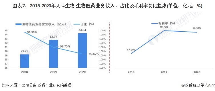 从生物医药业务的经营情况来看,2018-2020年,天坛生物的生物制品业务收入稳步增长,占总营收的比重接近100%,业务专注度较高。