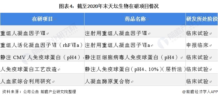 2020年,天坛生物研发投入2.38亿元,占营收的6.92%。截至2020年末,有5个在研项目,包括人凝血因子以及免疫蛋白类产品,且所研究产品国内暂未有公司实现自主研发上市。其中,静注巨细胞病毒人免疫球蛋白(pH4)的研究处于国内领先地位,目前国内只有天坛生物以及泰邦生物在研。
