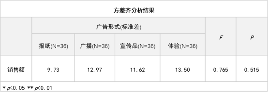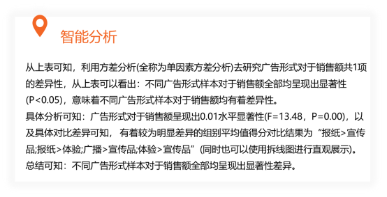 案例:不同广告形式对销售额的影响,是否有显著性差异?