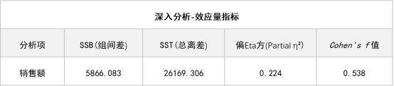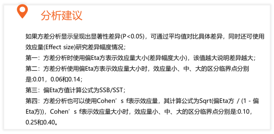 除此之外,SPSSAU也提供更为深入的检验指标,通过效应量可深入研究差异的幅度。