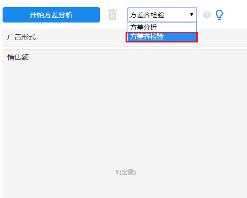 在SPSSAU中找到【通用方法】→【方差】,下拉右侧选框,选择【方差齐检验】。
