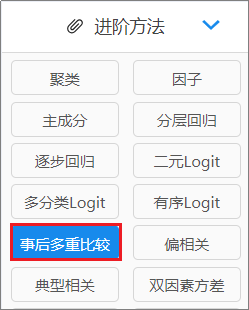SPSSAU提供了5种事后检验的方法,使用时需要根据自己的数据情况进行选择,系统默认使用LSD方法,其对差异的判断最为敏感。