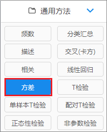 - 通用方法里的方差仅是单因素方差分析,其他如双因素方差分析在【进阶方法】里。