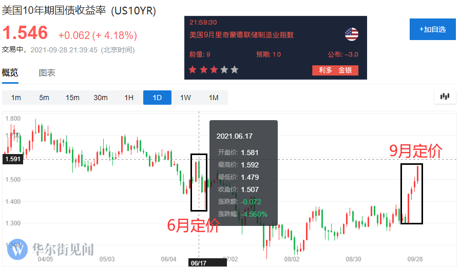 9月份的区别太大了,在此之前收益率曲线就已经筑底,但也是基于前期大跌之后的表现,说明在利率决议之前,市场是没有充分预期的,也没想到美联储会这么早行动,然后用了将近4个波动日,让收益率水平推升到了1.5%以上的水平,所以这轮定价已经差不多准备完毕,至于后边能不能延续涨势,这就要看后续美国经济数据的表现了,特别是通胀方面的指标。
