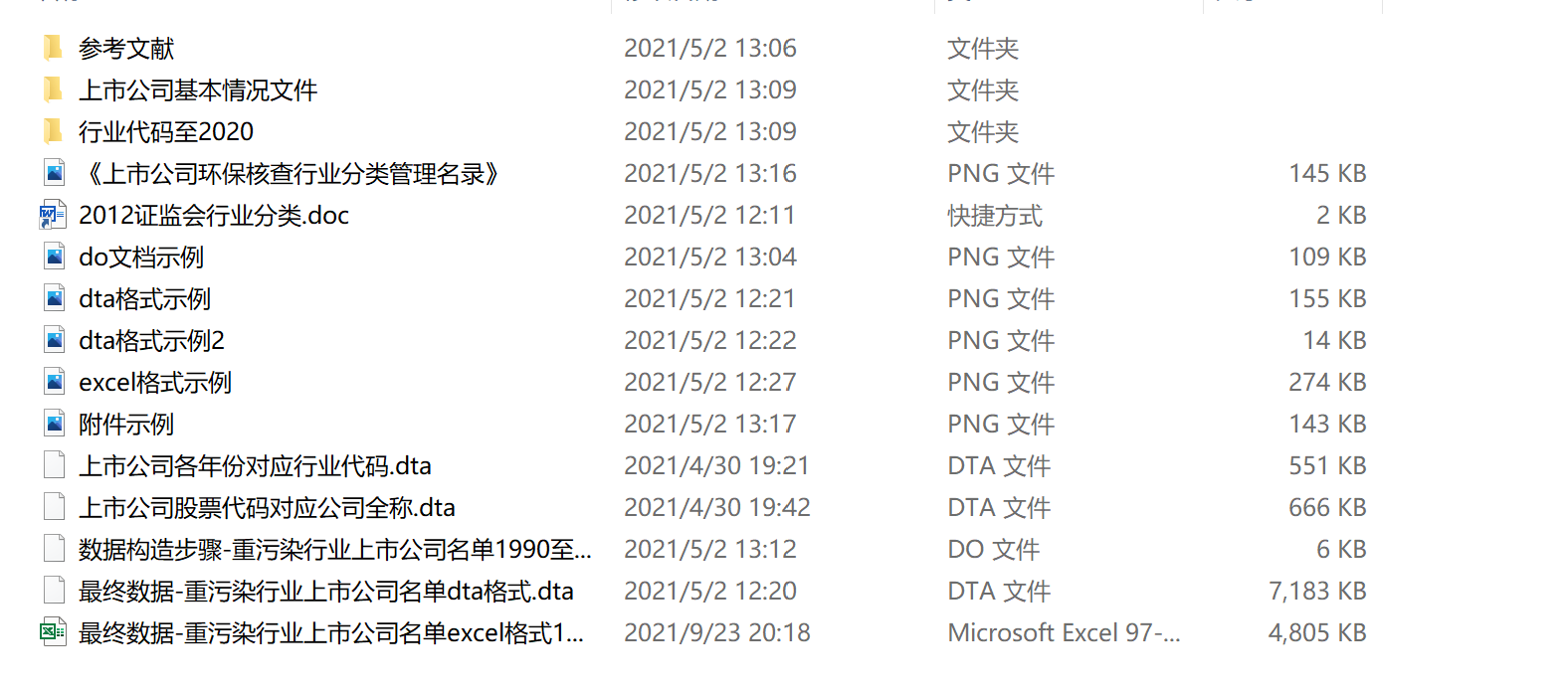 重污染企业名单的认定主要根据中国证券监督委员会2012年修订的《上市公司行业分类指引》、环境保护部2008年制定的《上市公司环保核查行业分类管理名录》(环办函[2008]373号)以及《上市公司环境信息披露指南》(环办函[2010]78号)具体名单以及数据相关参考文献都包含在文件夹中