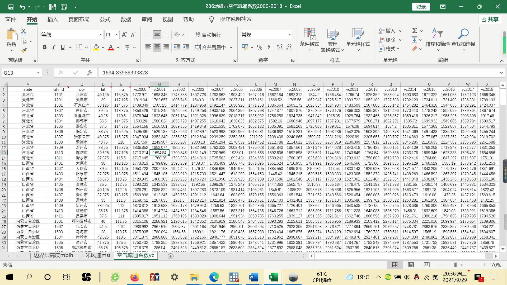 全国地级市空气流通系数的数据,时间跨度是2000-2018年<br>
