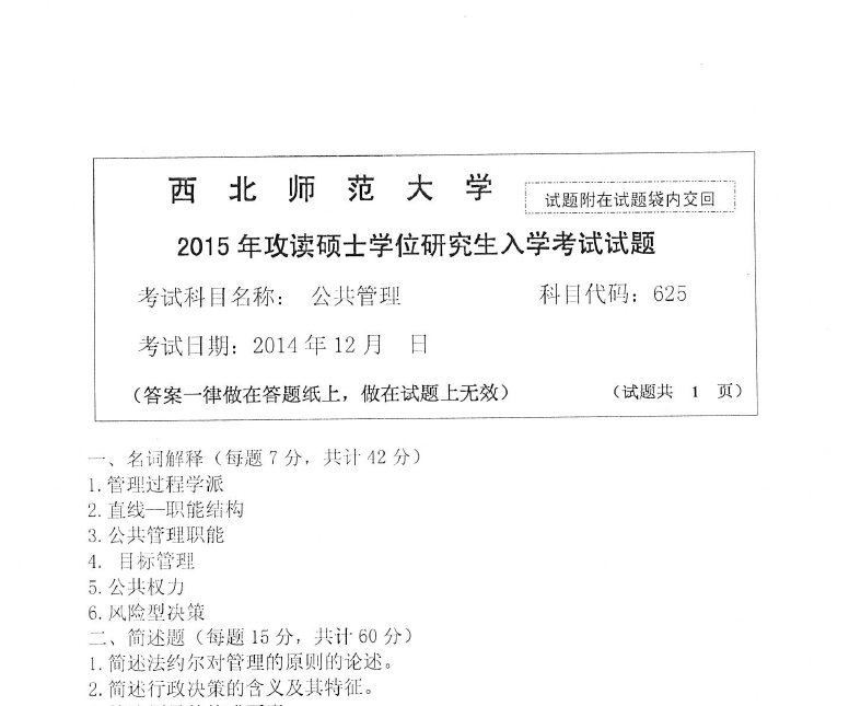 625公共管理(西北师范大学2015年攻读硕士学位研究生入学考试试题).pdf
