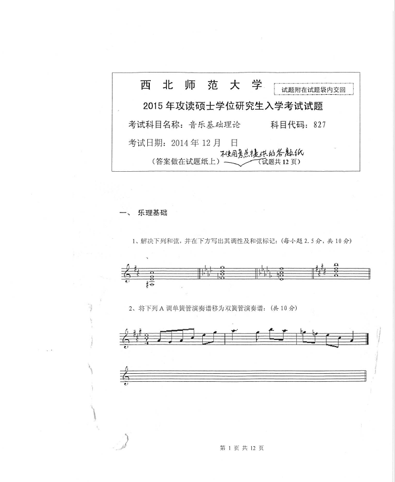 827音乐基础理论(西北师范大学2015年攻读硕士学位研究生入学考试试题).pdf