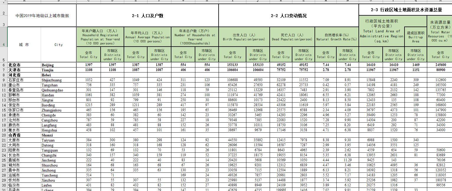 与君同勉 发表于 2021-10-4 16:35 中国城市统计年鉴2020年整理好的面板数据,格式如下图所示
