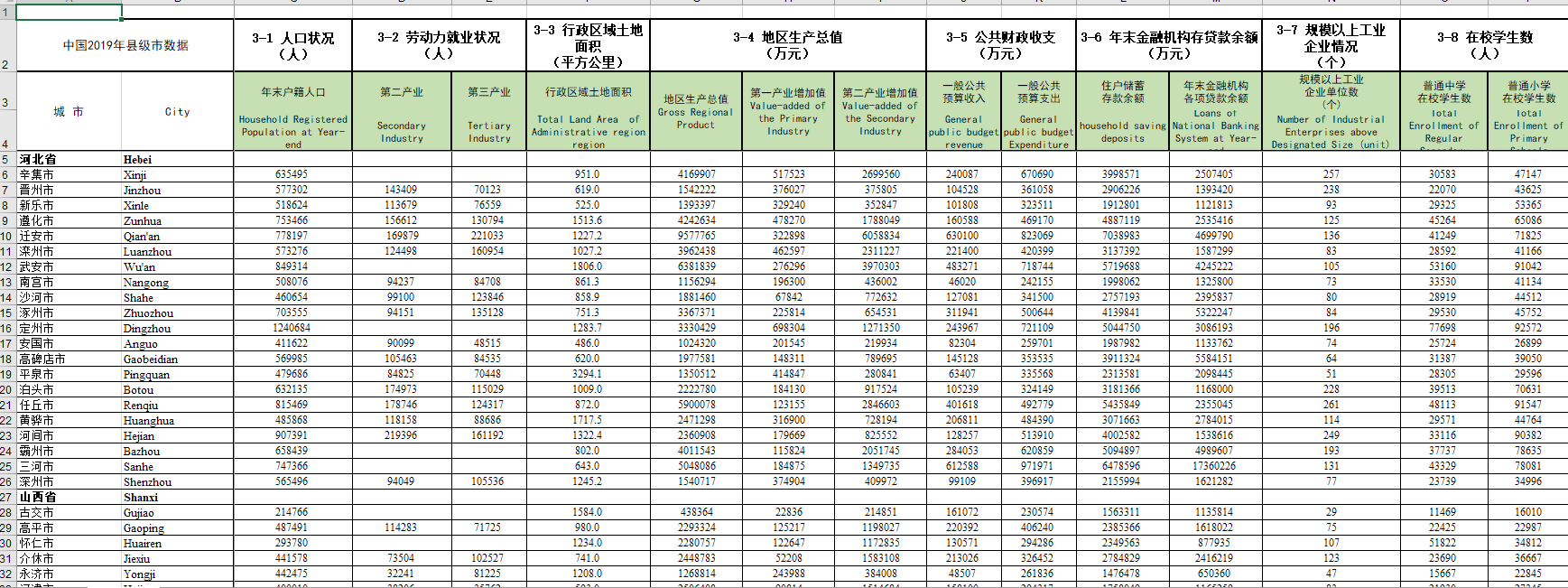 中国城市统计年鉴2020 地级市和县级市面板数据.rar